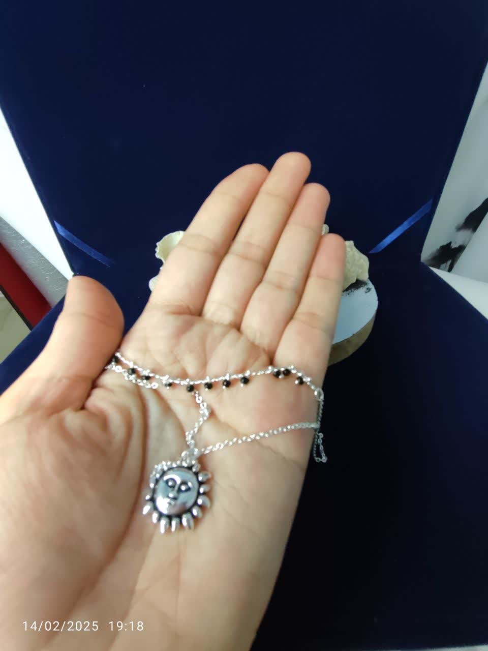 گردنبند دو زنجیره پلاک خورشیدی رنگ نقره ای