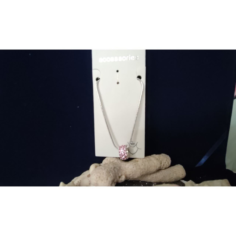 گردنبند دارای پلاک حلقه صورتی نگین دار هست که بسیار خاص و زیبا هست زنجیر نقره ای و پلاک بیرونش صورتی داخلش نقره ای هست